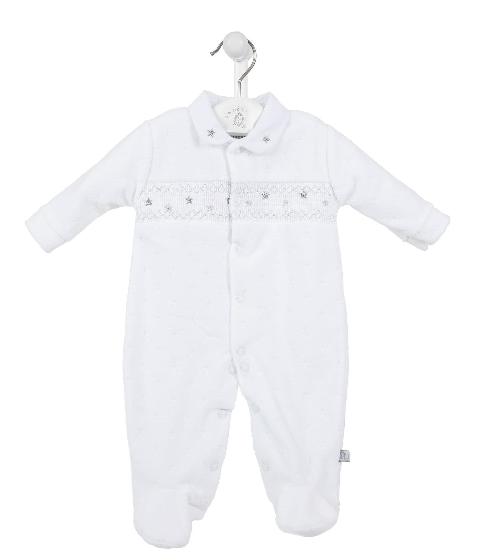 Blue star velour smocked sleepsuit