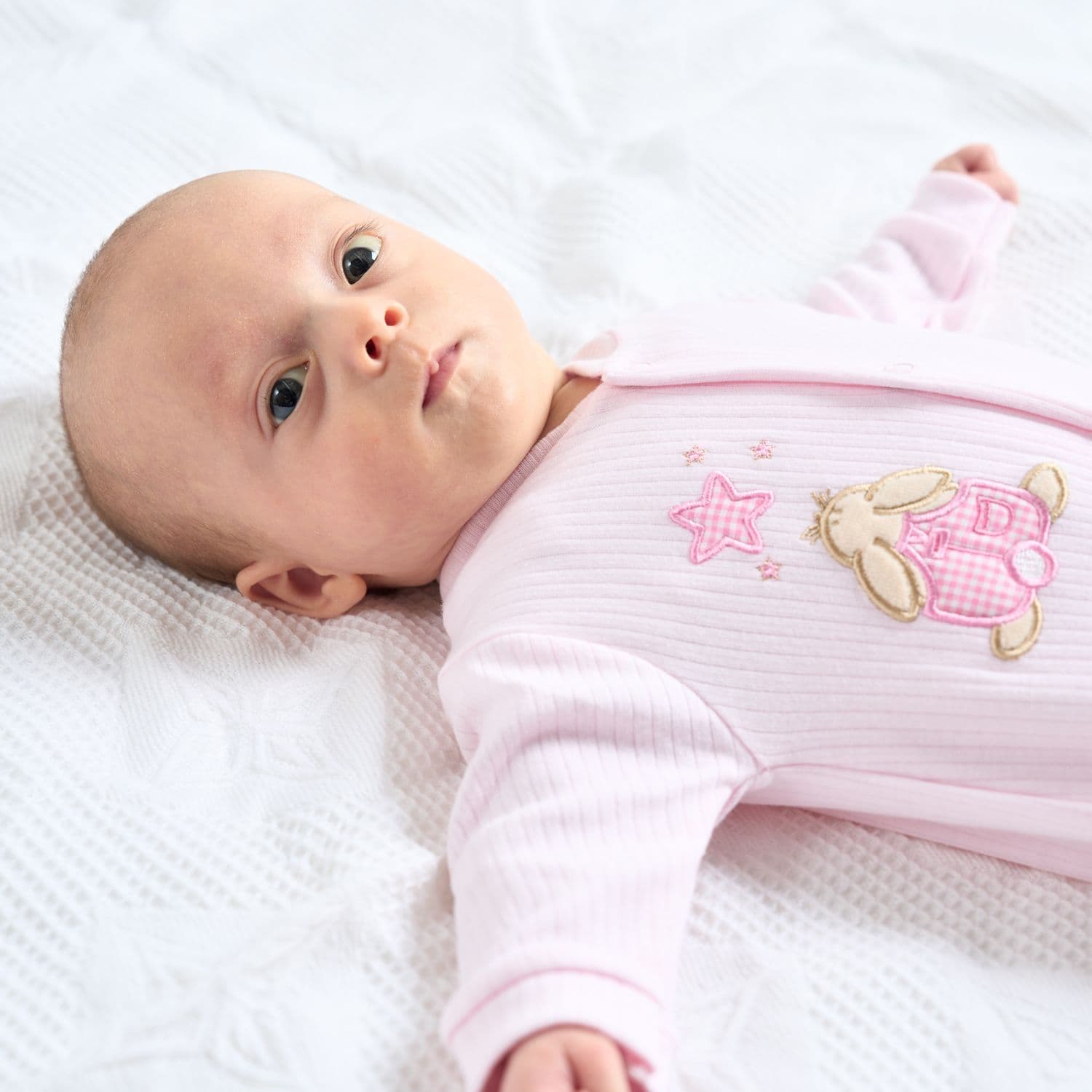 Pink rabbit & star cotton sleepsuit
