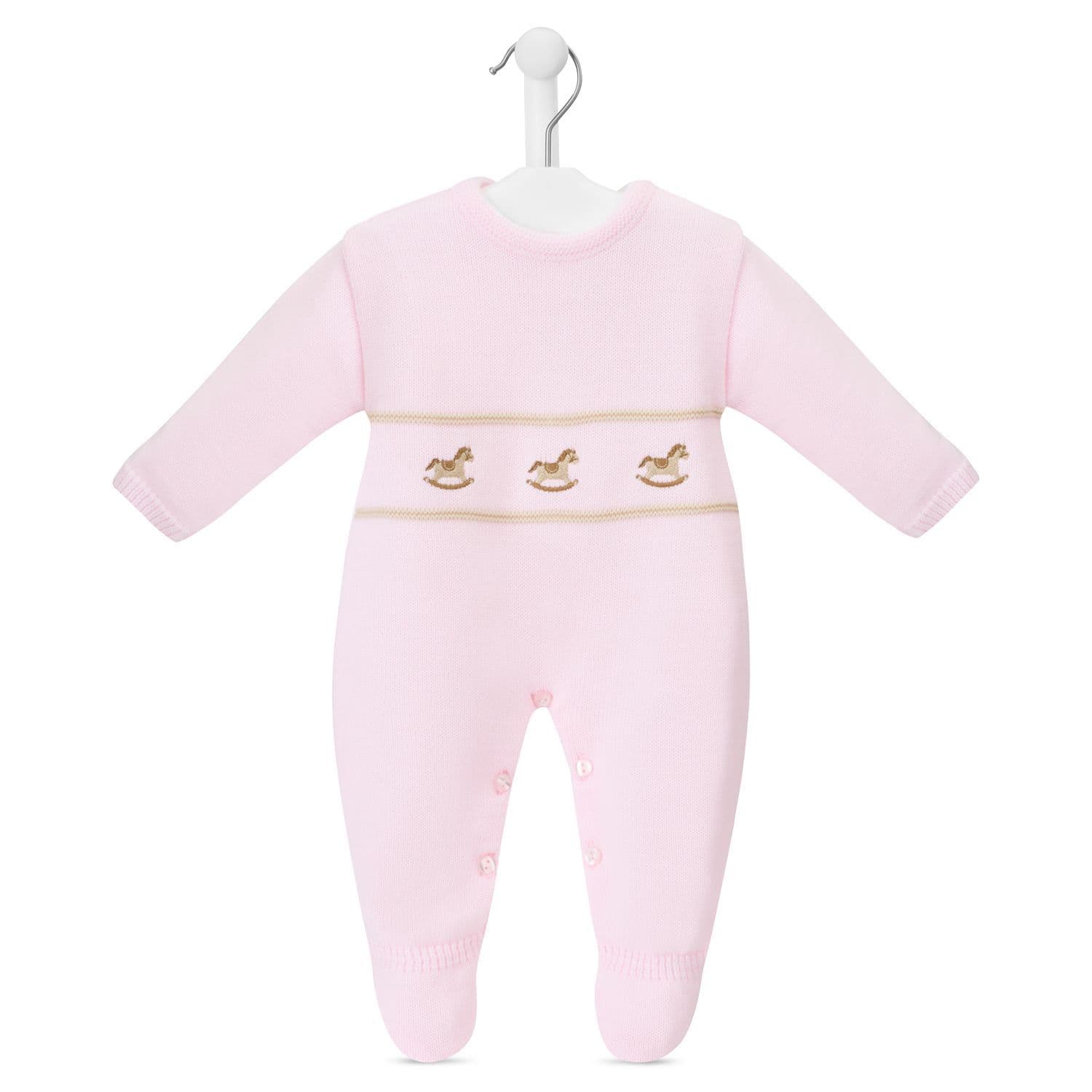 Pink rocking horse knitted onesie
