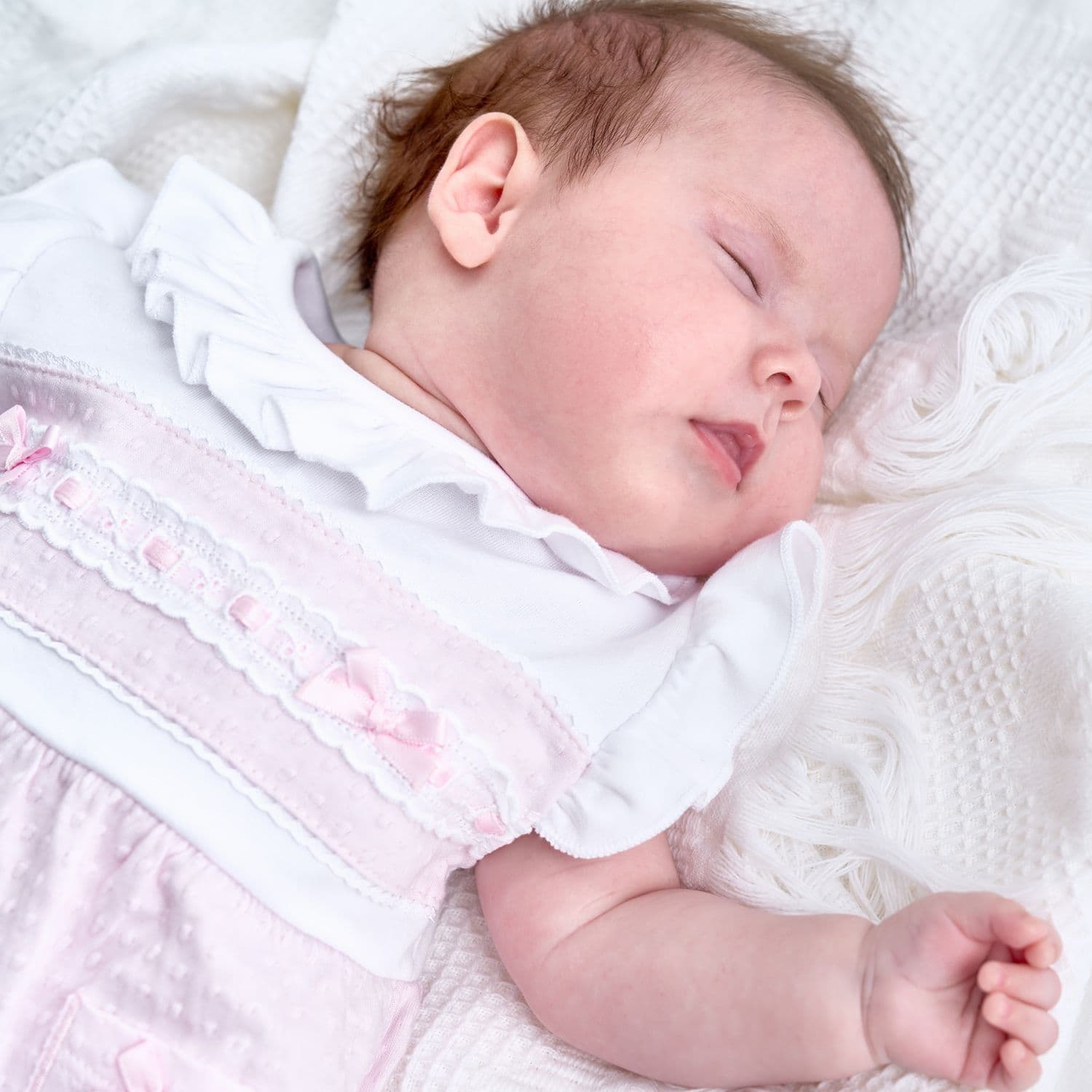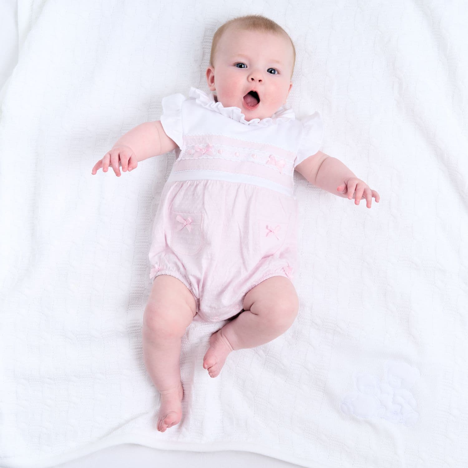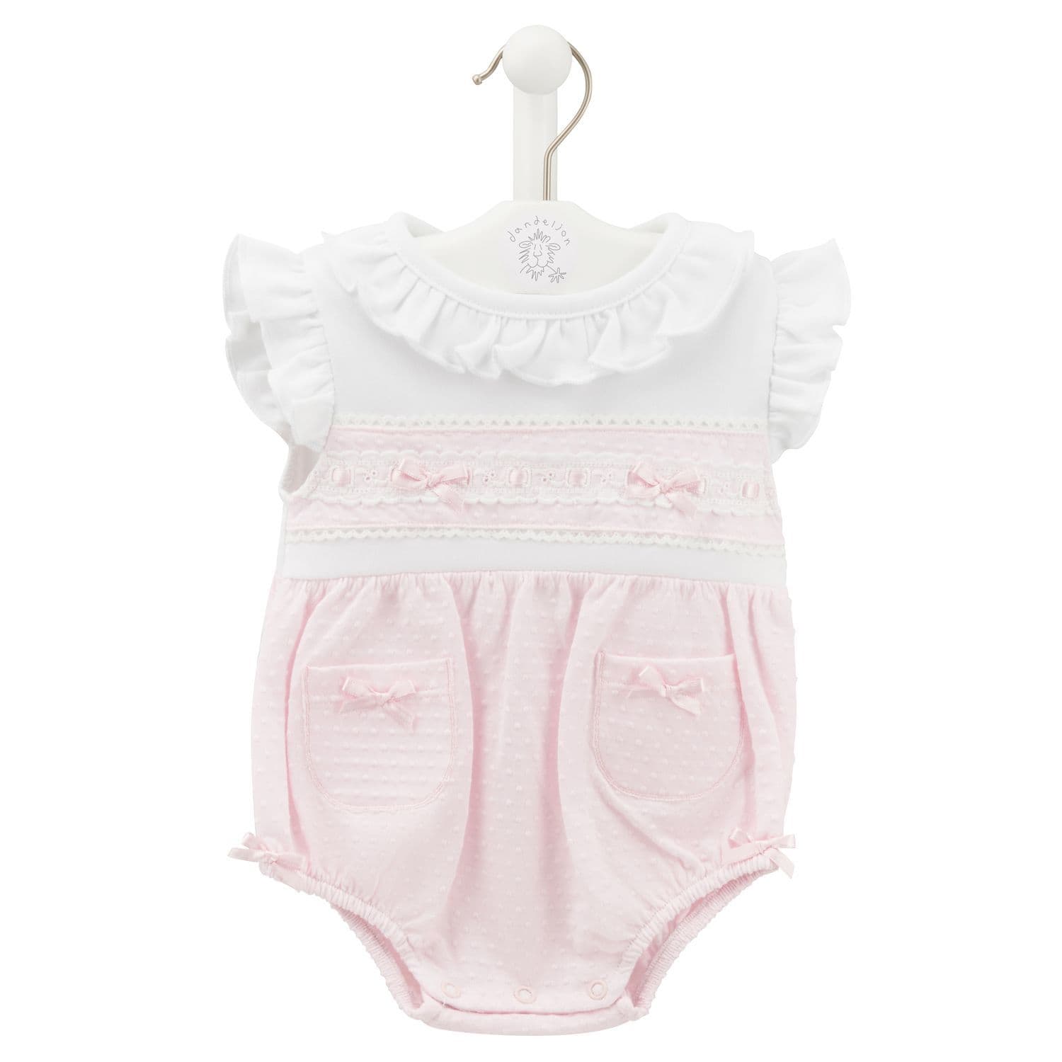 Pink ruffle & lace romper