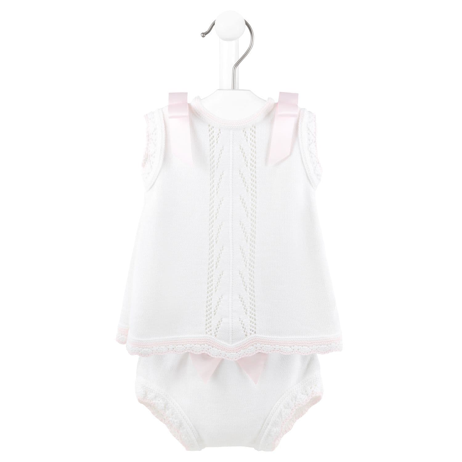 • Beautiful acrylic knitted baby girls dress with pique collar and Bows