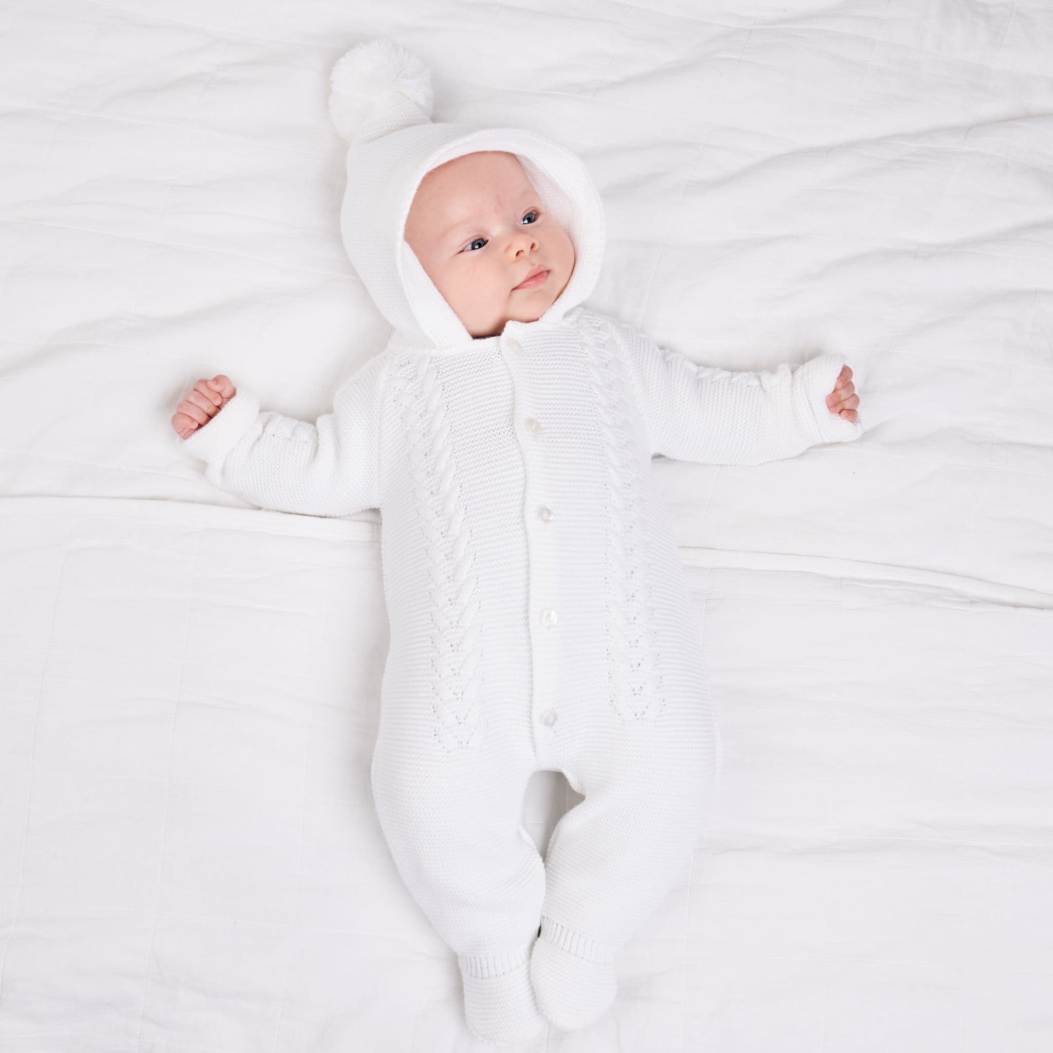 White cable knitted pramsuit